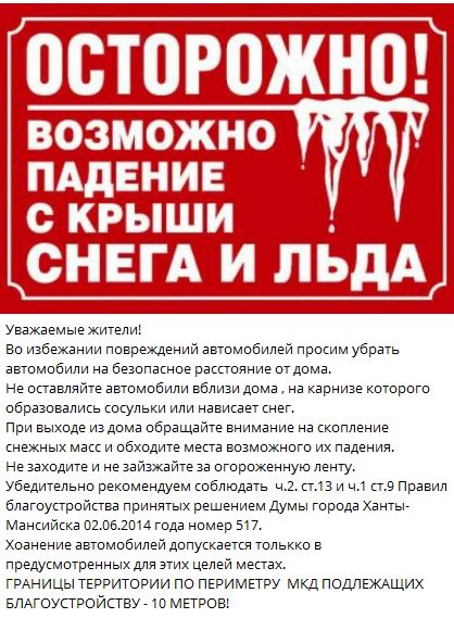 Управляющая организация МП «ЖКУ» информирует, что в дополнение к ежедневным планам по содержанию и уборке придомовых территорий многоквартирных домов а также в периоды интенсивных снегопадов, предприятием принимаются дополнительные меры как по уборке (очистке) придомовых территорий так и лавиноопасных участков крыш от снежных масс, находящихся в МП «ЖКУ» на управлении и обслуживании. За минувшие недели с придомовых территории МП «ЖКУ» на полигон вывезено более двух тысяч кубических метров снежной массы, очищено лавиноопасных участков крыш около шести тысяч квадратных метров. В последующие дни МП «ЖКУ» продолжит вывозить залежи снега со дворов МКД. В управляющей компании можно уточнить сведения о графике уборки и вывоза снега с придомовой территории по телефонам размещенным на информационных стендах МКД.